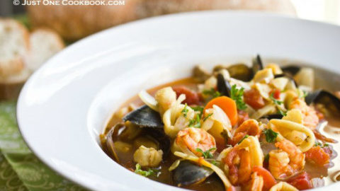Cioppino is a comforting san franciscan seafood stew filled with shrimp, clams, mussels, white fish, and crab legs simmered in a rich broth made from tomatoes, white wine, and fish stock.